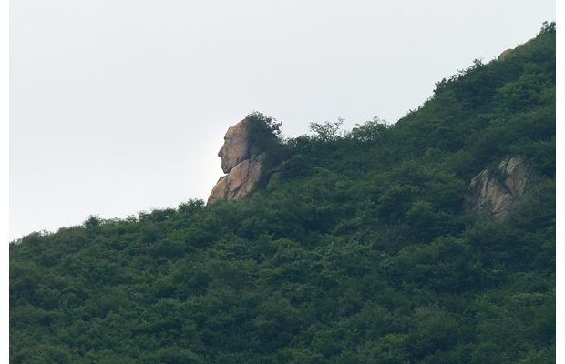 隨小公路草店至殷店段東側(cè)山嶺上有一塊巨石,酷似古人半身雕塑