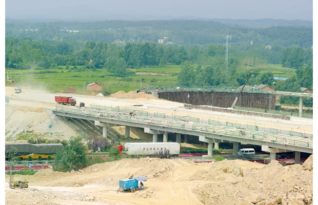 8月21日,隨縣均川鎮(zhèn)境內(nèi)麻竹高速與漢十高速互通建設(shè)現(xiàn)場。麻竹高速隨州西段全長54.3公里,總投資39.1萬億元,計劃2015年上半年通車。 (記者 李文軍攝)