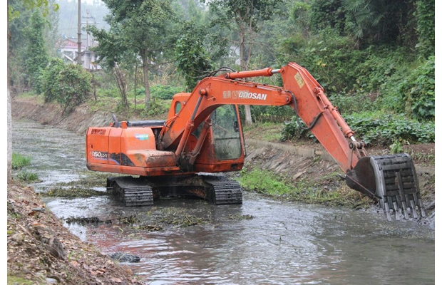 為迎接千年銀杏谷旅游旺季的到來,連日來,洛陽鎮(zhèn)開展鎮(zhèn)區(qū)及景區(qū)沿線一帶環(huán)境大整治,以確保亮麗環(huán)境迎接游客。圖為清運(yùn)河道內(nèi)雜草和垃圾。(記者 唐天才通訊員 毛利 攝)
