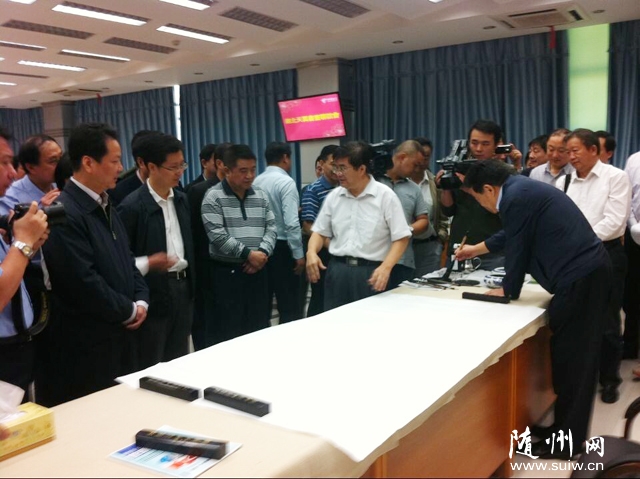 本網(wǎng)訊 記者黃闖報(bào)道:9月20日上午,我市舉行湖北省書畫家協(xié)會(huì)隨州委員會(huì)成立揭牌儀式暨天翼書畫聯(lián)誼活動(dòng)。省書畫家協(xié)會(huì)名譽(yù)主席、省人大常委會(huì)原副主任任世茂、省書畫家協(xié)會(huì)顧問(wèn)、國(guó)家一級(jí)書畫師蔣昌忠、隨州市委書記劉曉鳴、市長(zhǎng)郄英才等省、市領(lǐng)導(dǎo)出席大會(huì)。