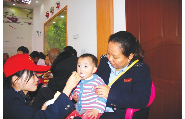 10月15日上午,曾都區(qū)國稅局志愿服務(wù)隊(duì)25人前往隨州市社會(huì)福利中心開展給老人過生日、與孩子做游戲等愛心活動(dòng)。圖為曾都國稅局志愿服務(wù)隊(duì)隊(duì)員陳忱、龍淑芬給兒童福利院的小寶貝歡歡喂上香甜的蛋糕。 (王旭剛/文 吳紹竹/攝)