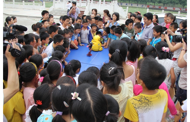 曾都區(qū)科技館經常深入學校開展科普活動,普及科學知識,傳播科學思想,推動了青少年科學素質的不斷提高。圖為科技館到洛陽鎮(zhèn)中心學校向學生展示機器人表演。 (馮先長攝)