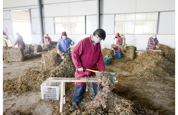 10月26日,隨縣高城鎮(zhèn)鴻發(fā)土特產(chǎn)公司工人正在切割打包魚腥草。截至10月底,該公司今年已向韓國出口近千噸中藥材,創(chuàng)匯過1000萬美元。 (記者 李文軍 通訊員 蔣 敏攝)
