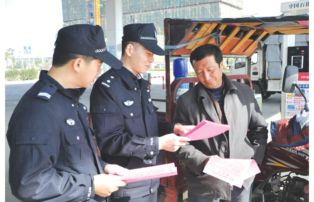 自11月1日始,隨縣公安局強力開展無牌摩托車“斷糧”行動。圖為該局工作人員在加油站利用執(zhí)勤間隙向摩托車車主發(fā)放宣傳單。(通訊員 葉忠江 胡木攝)