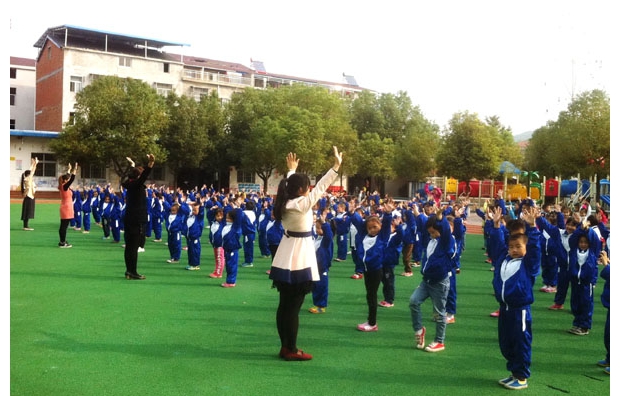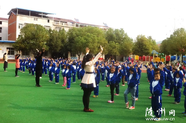 曾都區(qū)洛陽鎮(zhèn)小學幼兒園堅持“讓每朵花蕾都美麗綻放”的辦學理念,力求讓每一個幼兒在活動中培養(yǎng)興趣,在活動中培養(yǎng)能力。圖為該校幼兒在新建的塑膠運動場上晨練的場景。 (任遠潮 萬小麗 攝)