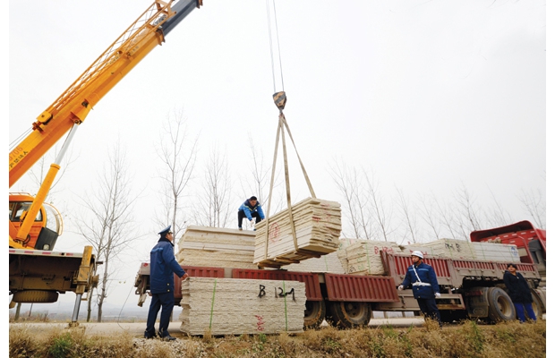 隨縣路政及交警部門近日在新唐公路啟動(dòng)路警共建聯(lián)合治超行動(dòng),對(duì)沿線超限運(yùn)輸車輛進(jìn)行專項(xiàng)整治。圖為執(zhí)法人員正在對(duì)超限運(yùn)輸石材的車輛進(jìn)行卸貨處理。(記者 李文軍 通訊員 孫宇峰攝)
