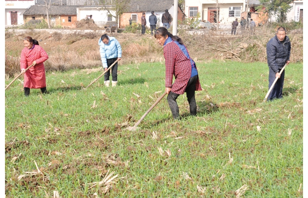 隨縣安居鎮(zhèn)鄧家廟村農(nóng)民互幫互助抓好冬季農(nóng)田管理,清溝排漬,松土鋤草,確保農(nóng)作物安全越冬。(記者 陳德友 通訊員 汪家國攝)