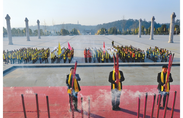 昨日,隨縣各界群眾隆重舉行祭拜炎帝儀式。圖為祭拜現(xiàn)場(chǎng)。(記者 李文軍攝)