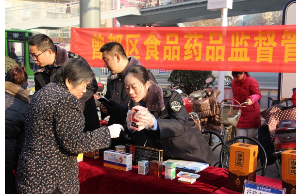 為提高市民識(shí)別假冒偽劣食品藥品的能力,曾都區(qū)食藥監(jiān)局于12月18日起在區(qū)范圍內(nèi)開(kāi)展為期一個(gè)月的食品藥品法律科普宣傳月活動(dòng)。圖為21日上午,區(qū)食藥監(jiān)局工作人員正在十字街中百倉(cāng)儲(chǔ)購(gòu)物廣場(chǎng)門前指導(dǎo)消費(fèi)者識(shí)別假冒偽劣食品藥品。(通訊員 張萍攝)