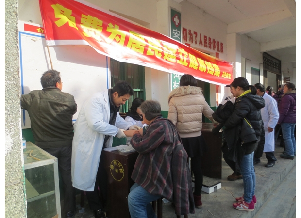 近期,隨縣安居鎮(zhèn)衛(wèi)生院組織醫(yī)護(hù)人員深入村組,在全鎮(zhèn)24個(gè)村(居委會)設(shè)置體檢中心,免費(fèi)為參加新農(nóng)合的群眾體檢,包括B超及心電圖、健康咨詢等多項(xiàng)醫(yī)學(xué)檢查。一個(gè)月來,共免費(fèi)體檢農(nóng)民3萬余人次,受到群眾好評。圖為安居鎮(zhèn)漂河村體檢現(xiàn)場。 (記者 陳德友 通訊員 范地明 攝)