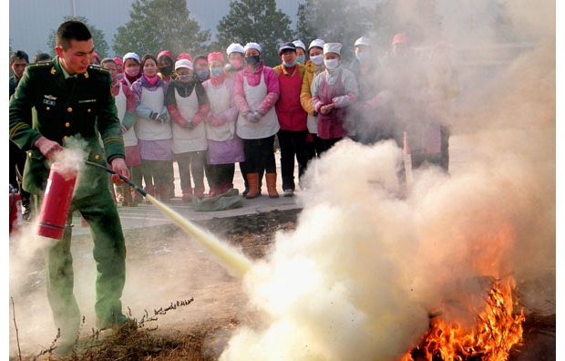 武警隨縣消防官兵為紡織工人現(xiàn)場(chǎng)講授示范消防設(shè)施使用方法