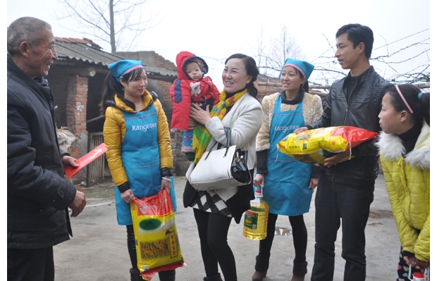 市政協(xié)委員、民建隨州市委會(huì)員、康潔洗衣公司總經(jīng)理李慧春節(jié)前來到隨縣安居鎮(zhèn)為貧困戶送溫暖。(記者 陳德友 通訊員 李 旭攝)