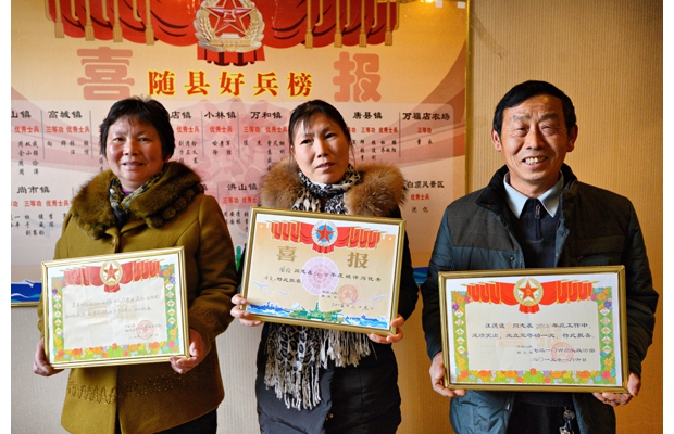 3月11日,隨縣武裝部舉行儀式,向全縣2014年立功受獎的60余名士兵家屬送喜報(bào)。2014年隨縣籍官兵有2人榮立二等功,28人榮立三等功,30余人被評為優(yōu)秀士兵。 (記者 李文軍攝)
