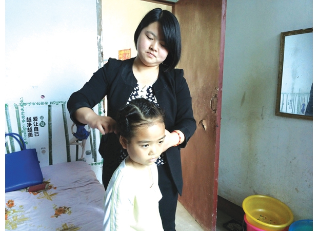隨州網(wǎng)訊 隨州市隨縣洪山鎮(zhèn)郭集小學(xué)老師與社會愛心人士一起,開展“愛心媽媽”關(guān)愛留守兒童活動(dòng)。圖為“愛心媽媽”李春艷為留守兒童梳頭。(記者 楊文明 通訊員 郭遠(yuǎn)成 攝)