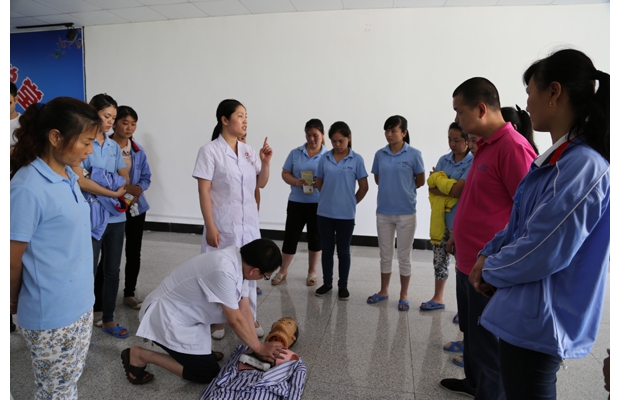 隨州網(wǎng)訊 7月1日,隨州市廣水衛(wèi)計局組織廣水市一醫(yī)院等醫(yī)療單位醫(yī)務人員,到該市新誠達服飾有限公司為企業(yè)員工講授急救知識和急救方法,發(fā)放急救藥品、避孕藥具和健康資料,以此慶祝黨的94歲生日。(通訊員 劉曉斌 何亞凌攝)