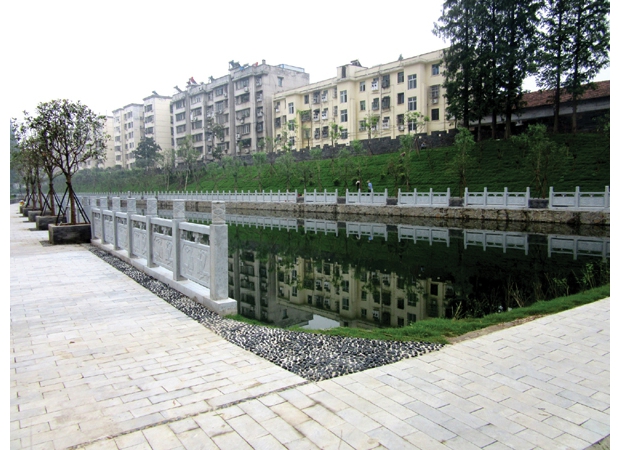 為了讓河水發(fā)揮自潔功能,市排水處在河床清淤后,采用鋪裝預(yù)制水泥框,然后填充上碎石子,讓污水沉淀,周邊還栽上水生植物,形成一個完整的水凈化系統(tǒng)。據(jù)悉,東護(hù)城河示范段共用了1200多個預(yù)制水泥框,鋪墊碎石近900立方米。