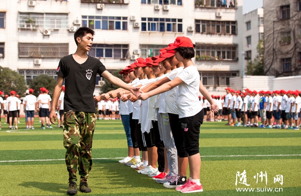 隨州網(wǎng)訊   暑期已近尾聲,不少學(xué)校已經(jīng)開(kāi)始開(kāi)學(xué)前的第一課——軍訓(xùn)。圖為8月26日,隨州市外國(guó)語(yǔ)學(xué)校的新生接受軍訓(xùn)。(記者徐 斌攝)