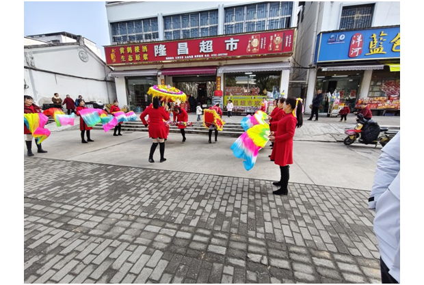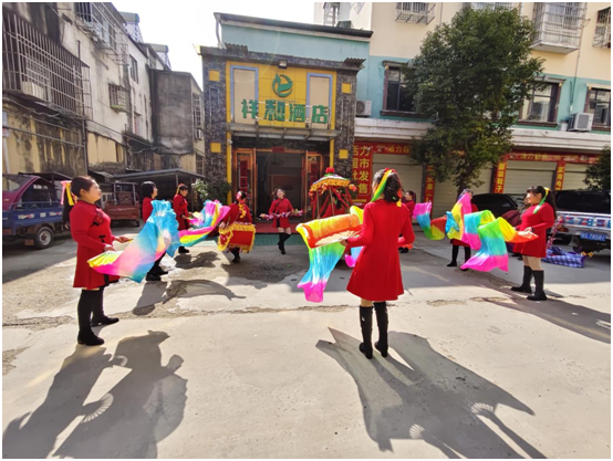 ——兩水溝社區(qū)組織舞蹈隊(duì)進(jìn)商戶(hù)送祝福
