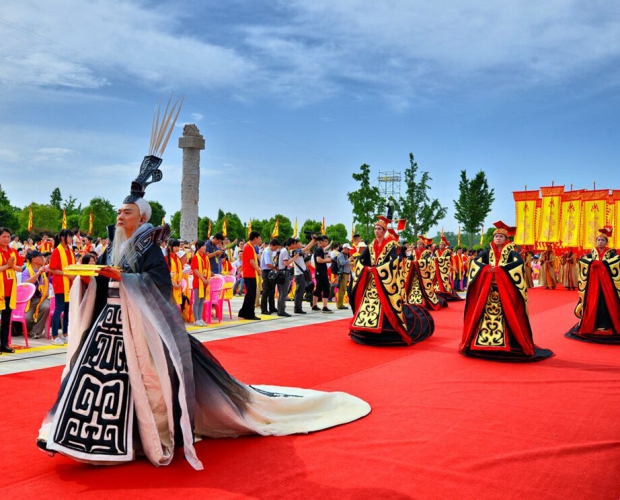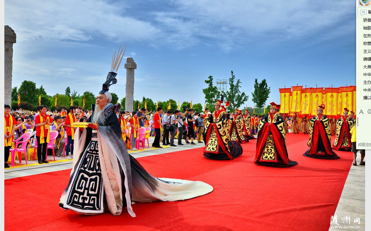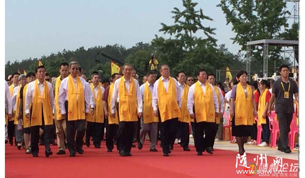 海內(nèi)外近萬(wàn)炎黃子孫再聚烈山拜謁始祖 馬飚許嘉璐張榮恭李鴻忠楊松等出席 隨州網(wǎng)訊 記者陳曉林報(bào)道:同根同祖,血濃于水;同心同愿,祈福中華。2015年6月12日,農(nóng)歷四月二十六,乙未年世界華人炎帝故里尋根節(jié)開(kāi)幕式暨拜祖大典在湖北隨州隆重舉行。海內(nèi)外近萬(wàn)名炎黃子孫再聚烈山,拜謁中華民族的人文始祖炎帝神農(nóng)氏,緬懷圣祖功德,祈愿國(guó)泰民安、人民幸福。 全國(guó)政協(xié)副主席馬飚,第十屆全國(guó)人大常委會(huì)副委員長(zhǎng)、中華炎黃文化研究會(huì)會(huì)長(zhǎng)許嘉璐出席大典。 中國(guó)國(guó)民黨中央評(píng)議委員會(huì)主席團(tuán)主席張榮恭,中共湖北省委書(shū)記、省人大常委會(huì)主任李鴻忠,湖北省政協(xié)主席楊松,海峽兩岸關(guān)系協(xié)會(huì)副會(huì)長(zhǎng)孫亞夫,中國(guó)文學(xué)藝術(shù)界聯(lián)合會(huì)副主席、書(shū)記處書(shū)記楊承志,中華全國(guó)歸國(guó)華僑聯(lián)合會(huì)副主席康曉萍,中華炎黃文化研究會(huì)常務(wù)副會(huì)長(zhǎng)兼秘書(shū)長(zhǎng)張希清,衛(wèi)生部原副部長(zhǎng)、世界中醫(yī)藥學(xué)會(huì)聯(lián)合會(huì)會(huì)長(zhǎng)佘靖,省領(lǐng)導(dǎo)李春明、傅德輝、梁偉年、甘榮坤、劉善橋,省老領(lǐng)導(dǎo)李明波、林志慧,陜西省政府原副省長(zhǎng)吳登昌,海峽兩岸旅游交流協(xié)會(huì)秘書(shū)長(zhǎng)劉克智,中國(guó)科學(xué)院院士陳可冀,中國(guó)工程院院士李連達(dá),泰國(guó)國(guó)防宗教文化部副主席周力平,全美華裔總商會(huì)主席梁冠軍,香港特區(qū)政府駐漢代表方明遠(yuǎn),澳門(mén)特區(qū)政府駐京代表束文剛,臺(tái)灣苗栗縣前縣長(zhǎng)劉政鴻,中國(guó)國(guó)民黨中央委員會(huì)常務(wù)委員曾文培,中國(guó)國(guó)民黨中央委員會(huì)委員翁文斌、詹昭榮,臺(tái)灣中華神農(nóng)大帝協(xié)進(jìn)會(huì)副理事長(zhǎng)方雕義,抗戰(zhàn)老兵靳明、孫維禮,中共隨州市委書(shū)記劉曉鳴、市長(zhǎng)郄英才等參加大典。 今日的隨州,陽(yáng)光燦爛,惠風(fēng)和暢、生機(jī)盎然。炎帝故里景區(qū)門(mén)前,鑼鼓喧天,載歌載舞。炎帝圣像莊嚴(yán)偉岸,令人起敬。嘉賓們懷著崇敬的心情,陸續(xù)步入拜祖廣場(chǎng),共同期待著激動(dòng)人心的一刻。 上午8時(shí)38分,在《詩(shī)經(jīng) 小雅 鹿鳴》的兒童吟誦聲中,大典開(kāi)始。經(jīng)過(guò)奉祀方陣入場(chǎng)、祭祀舞蹈《八佾舞》等環(huán)節(jié),大典進(jìn)入拜祖儀式。副省長(zhǎng)甘榮坤主持儀式。拜祖儀式共有九項(xiàng)儀程: ——大典致辭。甘榮坤致歡迎辭。他說(shuō),“編鐘鳴盛世,心香敬始祖。今天,來(lái)自世界各地的炎黃子孫齊聚烈山,慎終追遠(yuǎn),共拜始祖!瓱o(wú)論時(shí)代如何變遷,炎帝精神始終是中華民族自強(qiáng)不息的力量源泉,始終是炎黃子孫團(tuán)結(jié)奮斗的精神旗幟,激勵(lì)著中華民族從遠(yuǎn)古走向文明,從蒙昧走向輝煌! ——大典開(kāi)幕。第十屆全國(guó)人大常委會(huì)副委員長(zhǎng)、中華炎黃文化研究會(huì)會(huì)長(zhǎng)許嘉璐宣布大典開(kāi)幕。 ——恭啟圣門(mén)。全國(guó)政協(xié)副主席馬飚和中共湖北省委書(shū)記、省人大常委會(huì)主任李鴻忠共同開(kāi)啟炎帝神農(nóng)大殿圣門(mén)。 ——點(diǎn)燃圣火。在《三獻(xiàn)禮》的唱誦樂(lè)舞聲中,中國(guó)科學(xué)院院士陳可冀、香港特區(qū)政府駐漢代表方明遠(yuǎn)、澳門(mén)特區(qū)政府駐京代表束文剛、臺(tái)灣中華神農(nóng)大帝協(xié)進(jìn)會(huì)副理事長(zhǎng)方雕義和來(lái)自全國(guó)的30名鄉(xiāng)村教師共同點(diǎn)燃炎帝圣火。 ——敬獻(xiàn)花籃。各級(jí)領(lǐng)導(dǎo)和嘉賓馬飚、許嘉璐,張榮恭、劉政鴻、曾文培、孫亞夫、楊承志、康曉萍、張希清,李鴻忠、楊松、李春明,甘榮坤,劉曉鳴、郄英才等分批敬獻(xiàn)花籃。 ——敬獻(xiàn)高香。華人華僑、港澳臺(tái)人士、文化界、企業(yè)界、宗教界等各界代表劉克智、周力平、梁冠軍、姚征、胡曉軍、馬克、翁文斌、詹昭榮、陳興國(guó)、陳雄英,劉紅軍、佘靖、李連達(dá)、吳登昌、任學(xué)安、米東明、李抗美、劉富民、孫光榮、余世存、常文光、張杰、鄧建玲、何亞非、焦正軍、邱曙平、嚴(yán)介和、汪力成、曾穎堂、莫躍明、陳宏志、田長(zhǎng)桉、劉俊剛、尼瑪扎西、沈田義、劉廣東、劉寶林、徐德、釋印順、吳誠(chéng)真等依次敬獻(xiàn)高香。 ——恭讀頌祖文。炎帝子孫代表恭讀《頌炎帝文》(全文另發(fā))。 ——共拜始祖,F(xiàn)場(chǎng)全體人員向炎帝神農(nóng)行施拜禮。 ——唱誦始祖。合唱《炎帝大歌》,將頌揚(yáng)炎帝功德的贊歌再次唱響在烈山之上。隨后,匯聚世界各地華人心聲的《赤子之聲》,表達(dá)了海內(nèi)外華人華僑對(duì)祖國(guó)民族的認(rèn)同,對(duì)中華文化的守望,對(duì)身為炎黃子孫的驕傲和自豪。由海峽兩岸學(xué)子共同表演的編鐘樂(lè)舞《神農(nóng)贊》,以及壓軸歌曲《炎帝情,中華夢(mèng)》,引爆了唱誦的高潮。 在熱烈祥和的氣氛中,簡(jiǎn)樸而隆重的拜祖大典告成。參加大典的嘉賓們稱(chēng)贊,今年的拜謁大典,既嚴(yán)格遵循了規(guī)制,又與時(shí)俱