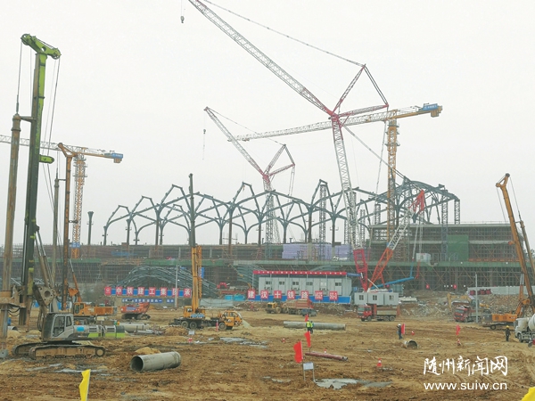 隨州新聞網(wǎng)訊 漢十高鐵隨州南站及站前廣場(chǎng)項(xiàng)目去年11月啟動(dòng)建設(shè)后,快速推進(jìn),預(yù)計(jì)今年11月可全面建成。圖為正在建設(shè)的隨州南站工地。(隨州日?qǐng)?bào)全媒體記者 馮家園攝)