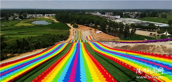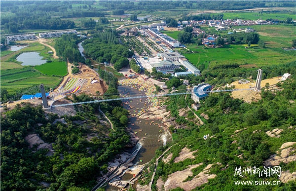 隨州市樂通旅游設(shè)備有限公司與西游記漂流合作,一期投資3000萬元打造鄂豫皖首家極限綜合運動樂園,建設(shè)玻璃棧橋、七彩滑道、極限滑草、叢林穿梭、網(wǎng)紅橋、懸崖秋千等10余個極限運動項目,計劃用5年時間將西游記漂流打造成年旅游收入過億元的鄂北四季生態(tài)旅游中心。圖為7月4日正在收尾施工的高空玻璃棧橋和七彩滑道項目。(隨州日報全媒記者 李文軍攝)