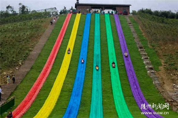 2.七彩滑道遠遠望去,猶如一道道七色彩虹,燦爛奪目,四面青山繞綠水,環(huán)境優(yōu)美。此項目建于漂流終點左側(cè)山坡。