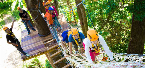 4.叢林穿越是一項在樹上進行的探險項目,集冒險、運動、娛樂、挑戰(zhàn)于一體的戶外運動項目,玩家需要通過懸空橋梁、網(wǎng)道、步道、木道、泰山秋千、飛狐索道和其他趣味環(huán)節(jié)等方式進行樹木間的探險,通過爬、滑、游、跨、跳、飛等動作越過所有障礙到達終點。(此項目建于漂流河邊停車場槐樹林中 )