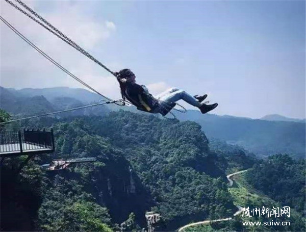 6.懸崖秋千也叫高空秋千,先是會被吊掛在懸崖上空,然后被放開,絕對刺激。此項目建于滑草場上平臺。