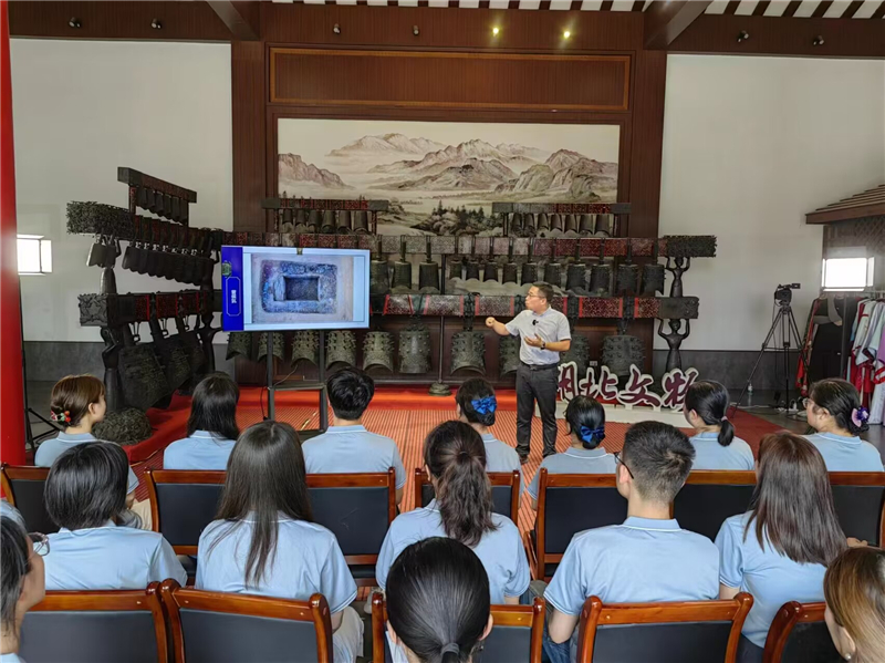 在曾侯乙墓編鐘展示廳,湖北省文物考古研究院副院長(zhǎng)、研究員郭長(zhǎng)江主講,圍繞曾國(guó)700年,通過(guò)擂鼓墩、葉家山、棗樹(shù)林等墓地出土文物考古發(fā)現(xiàn)史證,系統(tǒng)解讀了神密?chē)?guó)度古曾國(guó)的發(fā)展史。通過(guò)直播宣傳,更好地弘揚(yáng)曾隨文化,增強(qiáng)文化自信。(通訊員任尚海、程娜娜攝)
