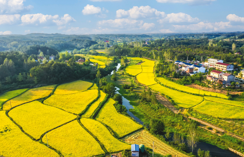 金秋時節(jié),隨州大地一片豐收在望景象。圖為曾都區(qū)何店鎮(zhèn)的一片片金黃的稻田。(隨州日報全媒記者李文軍、通訊員韓起璞攝)