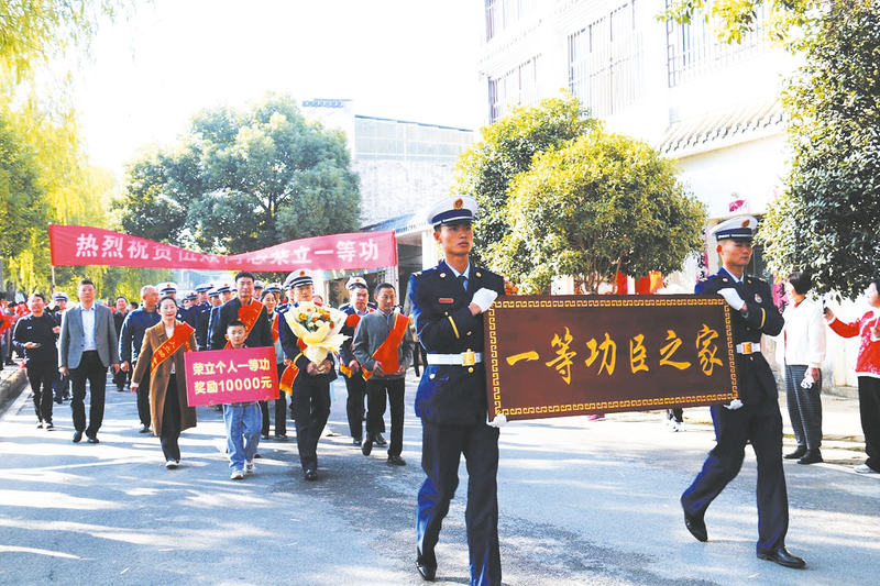 在茂名石化“6·8”泄漏起火事故處置中,隨州籍消防官兵伍焱勇闖火海戰(zhàn)烈焰,被應(yīng)急管理部消防救援局榮記個(gè)人一等功。10月25日,廣東省茂名市消防官兵跨越兩千里來(lái)到曾都區(qū)洛陽(yáng)鎮(zhèn),為英雄之家送來(lái)了“一等功臣之家”的榮譽(yù)牌匾。