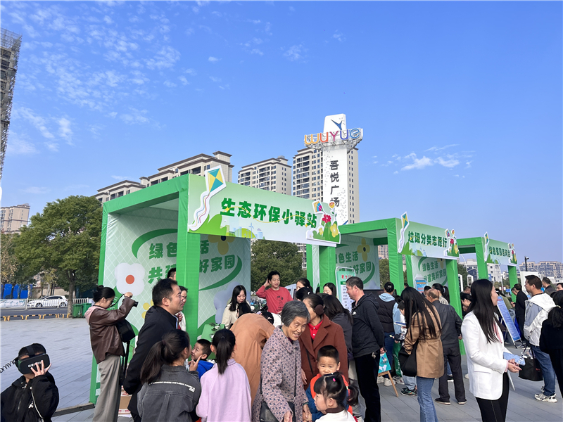 啟動儀式后,還進(jìn)行了環(huán)保主題表演、參觀體驗(yàn)主題展區(qū)等活動。據(jù)悉,主題展區(qū)分為“綠色家園咨詢臺”、“垃圾分類志愿行”、“生態(tài)環(huán)保小驛站” 、“科普大篷車”、“以書換蔬”、 “以物易物” “十米畫卷”、“垃圾分類投擲小游戲”、“手工小作坊等區(qū)域。