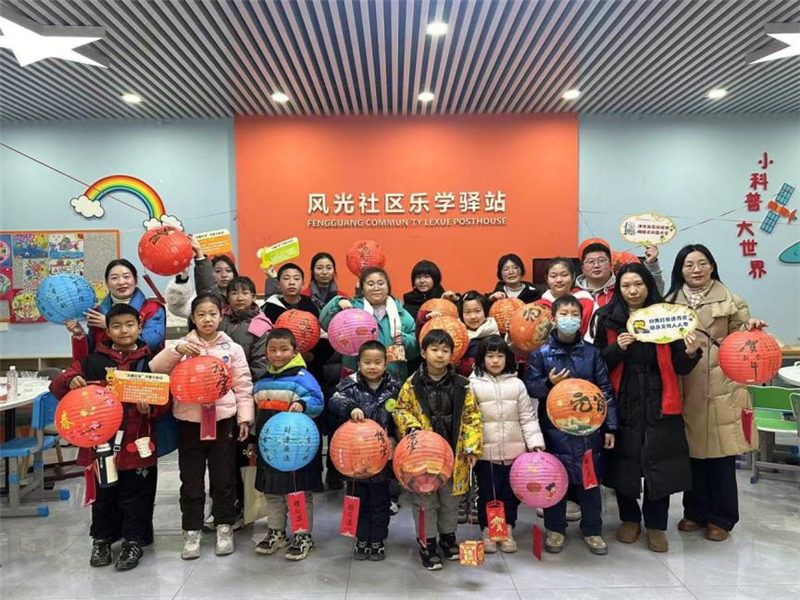 社區(qū)志愿者以趣味盎然的方式引領(lǐng)孩子們了解元宵節(jié)的深厚歷史與多彩習俗,讓他們深切感受傳統(tǒng)文化的獨特魅力,并引導他們多讀書,讀好書。隨后,家長與孩子們圍坐一堂,共同沉浸在制作燈籠的樂趣中。他們或低頭專注剪裁,或相視一笑粘貼,每一次折疊、每一次拼接,都凝聚著親子間的默契與愛意。彩紙翻飛間,一盞盞形態(tài)各異、色彩斑斕的燈籠躍然眼前,宛如點亮了孩子們心中的創(chuàng)意之光,映照出親子合作的溫馨畫面。