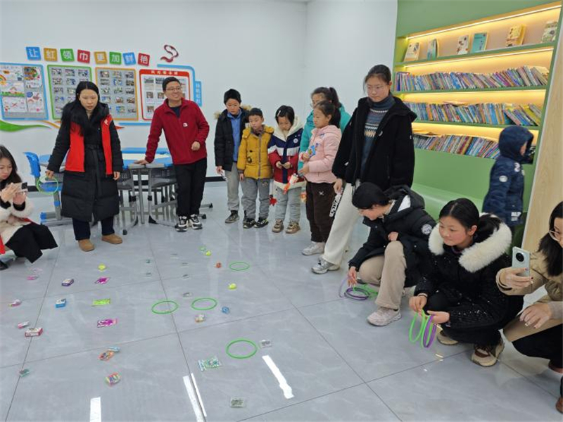 游戲互動環(huán)節(jié),孩子們興奮地參與積分套圈圈游戲,他們手持圈圈,或站或蹲,全神貫注地瞄準目標,每一次投擲都伴隨著緊張與期待。每當圈圈穩(wěn)穩(wěn)套中目標,人群中就會爆發(fā)出一陣陣歡呼聲,孩子們更是興奮得手舞足蹈,相互擊掌慶祝。志愿者在一旁忙碌記錄著積分,不時為孩子們加油鼓勵,并為獲獎?wù)哳C發(fā)獎品。整個現(xiàn)場充滿了歡聲笑語,孩子們在游戲中學會了合作與分享,度過了一個有意義的元宵佳節(jié)。