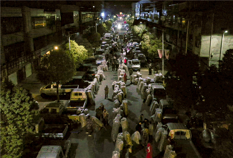 3月17日凌晨4點(diǎn),氣溫低至零下3度,殷店鎮(zhèn)楚北香菇木耳大市場(chǎng)卻是人山人海!拔以缟3點(diǎn)多就來(lái)了,每天都有菇販來(lái)這兒定點(diǎn)收購(gòu),根本不愁賣!惫睫r(nóng)周春意盤起了小賬,從今年開市到現(xiàn)在,已經(jīng)賣了2000多斤花菇,價(jià)值七八萬(wàn)元。 正在一旁查看香菇品質(zhì)的賀秀君來(lái)自信陽(yáng)。據(jù)了解,賀秀君一行七八個(gè)人,去年9月就來(lái)到殷店鎮(zhèn)“駐扎”,就近收購(gòu),然后賣到本地萬(wàn)佳公司、河南或香港。 “楚北香菇木耳大市場(chǎng)作為華中地區(qū)最大的香菇交易樞紐,輻射隨州周邊鄉(xiāng)鎮(zhèn)及周邊城市!笔袌(chǎng)負(fù)責(zé)人萬(wàn)道忠告訴記者,“每年農(nóng)歷9月至次年4月的交易旺季,來(lái)自全國(guó)各地的200余名菇販駐點(diǎn)收購(gòu),日均交易量8至12萬(wàn)斤! 市場(chǎng)繁榮得益于完善的體系。為了方便菇農(nóng)和菇販進(jìn)行香菇交易,2003年,該鎮(zhèn)投資200萬(wàn)元建設(shè)了一座4萬(wàn)平方米的香菇大市場(chǎng),市場(chǎng)周圍有60家香菇加工戶,還配套有金融服務(wù)中心、電商直播間。 從“靠菇吃菇”到“點(diǎn)菇成金”,殷店鎮(zhèn)用了30年時(shí)間!跋乱徊接(jì)劃開發(fā)‘智慧菇市’平臺(tái),實(shí)現(xiàn)交易數(shù)據(jù)實(shí)時(shí)監(jiān)控。”王平表示,“將通過(guò)全鏈條升級(jí)、龍頭引領(lǐng)、惠農(nóng)機(jī)制創(chuàng)新和品牌賦能,把香菇轉(zhuǎn)化為富民強(qiáng)鎮(zhèn)的重要產(chǎn)業(yè),將殷店打造成香菇強(qiáng)鎮(zhèn)。”