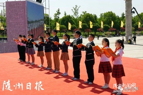 恭讀頌祖文。炎帝故里優(yōu)秀青少年學(xué)生代表恭讀《頌炎帝文》。