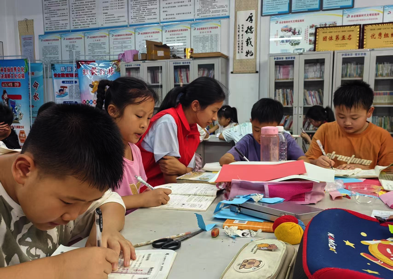7月4日,廣水市余店鎮(zhèn)新時代文明實踐所“暑假學堂”開課,返鄉(xiāng)大學生志愿者們對孩子們進行課業(yè)輔導和愛心陪護。志愿者仔細檢查孩子們作業(yè)完成情況,組織學生集中觀看安全防溺水主題教育視頻。通過教育活動,為孩子們安全度過假期提供堅實保障。 (隨州日報通訊員高曉涵、盧玉鑫攝)