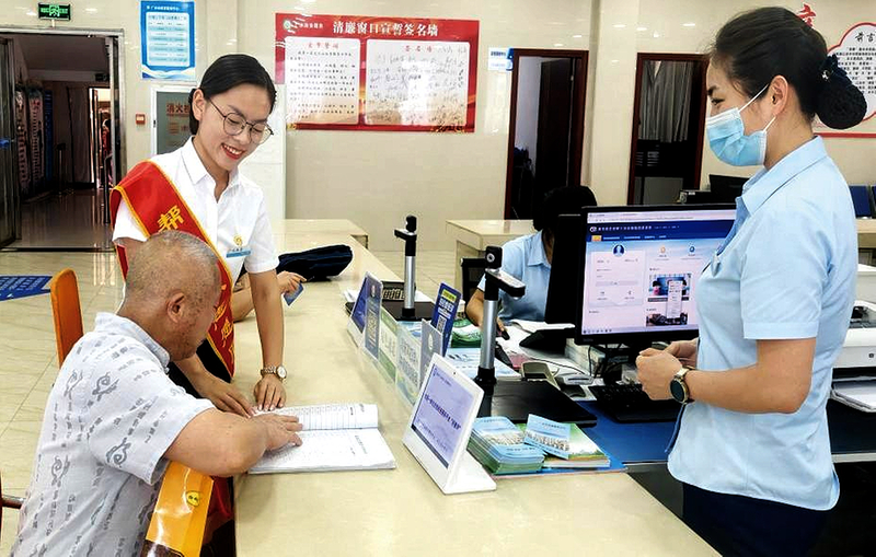 廣水市政務(wù)服務(wù)中心聚焦特殊群體的服務(wù)需求,專門為老年人、殘疾人等特殊群體設(shè)立“綠色通道”服務(wù)窗口,特殊群體可享受免排隊、優(yōu)先辦理等服務(wù)。幫辦代辦人員會主動上前提供“一站式”服務(wù),從咨詢解答、填表指導(dǎo)到全程幫辦代辦,讓特殊群體辦事更省心。圖為7月28日,該中心工作人員正幫助82歲的郝大爺辦理業(yè)務(wù)。