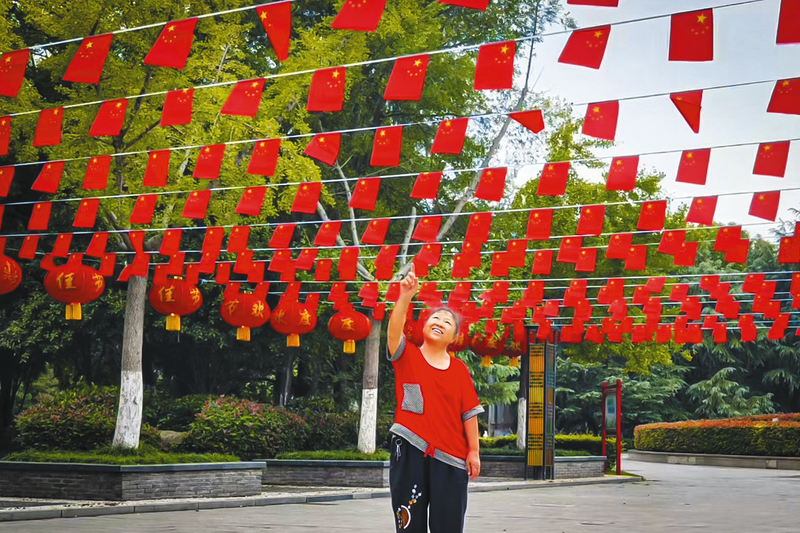 神農(nóng)公園拉起國旗彩帶