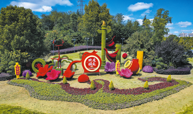 隨城街頭“歡度國慶”造景