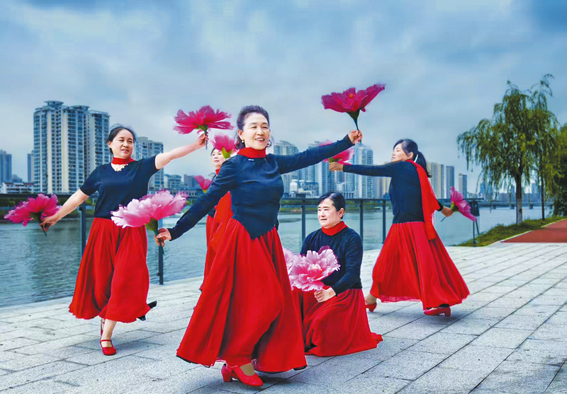 白云湖邊,幾位市民用舞蹈歡慶節(jié)日