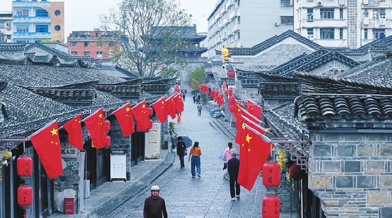 國慶、中秋“雙節(jié)”來臨,隨城草甸子街的商戶紛紛在門前懸掛鮮艷的國旗,營造喜慶祥和、家國同慶的氛圍。