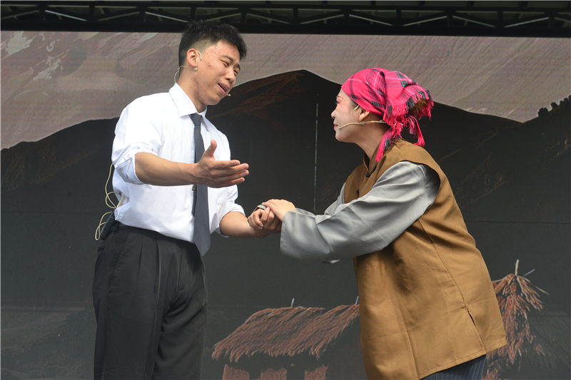 上午9點30分, 由曾都區(qū)文化和旅游局,淅河鎮(zhèn)人民政府主辦,隨州市花鼓藝術(shù)劇院承辦,曾都區(qū)淅河鎮(zhèn)綜合文化站,曾都區(qū)淅河鎮(zhèn)趙家咀村民委員會協(xié)辦的“文化惠民進村灣展演”,《百善孝為先.、重陽美德傳》演出活動,在舞蹈情景劇《紅色記憶》拉開序幕;ü膽颉囤w五娘吃糠》,小品《牽線》,國象級非遺表演《回娘家》,花鼓戲《十八相送》,情景劇《后媽》,舞蹈《美麗中國》將演出推向高潮。此次活動,趙家咀村民委員會精心組織觀眾,讓群眾在自已的家門口看大戲,領(lǐng)略高雅藝術(shù)的魅力。該村95歲高齡張明傳老人說,在我有生之年能在自己的家門口觀看高雅藝術(shù)非遺表演是我一生中最大的榮興。(通訊員王濤攝)