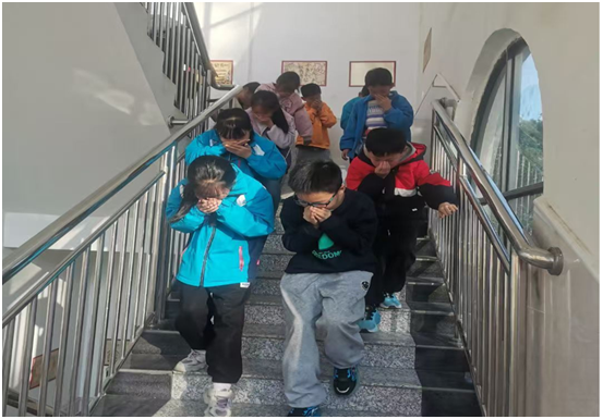 下午15時05分,警報聲響起,演練正式開始。各班學生在老師的指揮下,迅速捂住口鼻,彎腰低姿,按照預定路線緊張而有序地撤離。僅用 2分42秒,全體師生便全部安全抵達操場集合點,過程快速、有序。