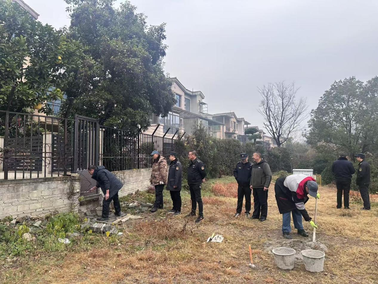 考慮到部分業(yè)主缺乏專業(yè)修復能力,自行整改存在困難,風光社區(qū)主動靠前服務,對接專業(yè)施工團隊跟進修復。行動當日,專班人員與施工隊密切配合,對21處破損圍欄開展標準化復原作業(yè),采用水泥抹平的方式,確保圍墻安全牢固。