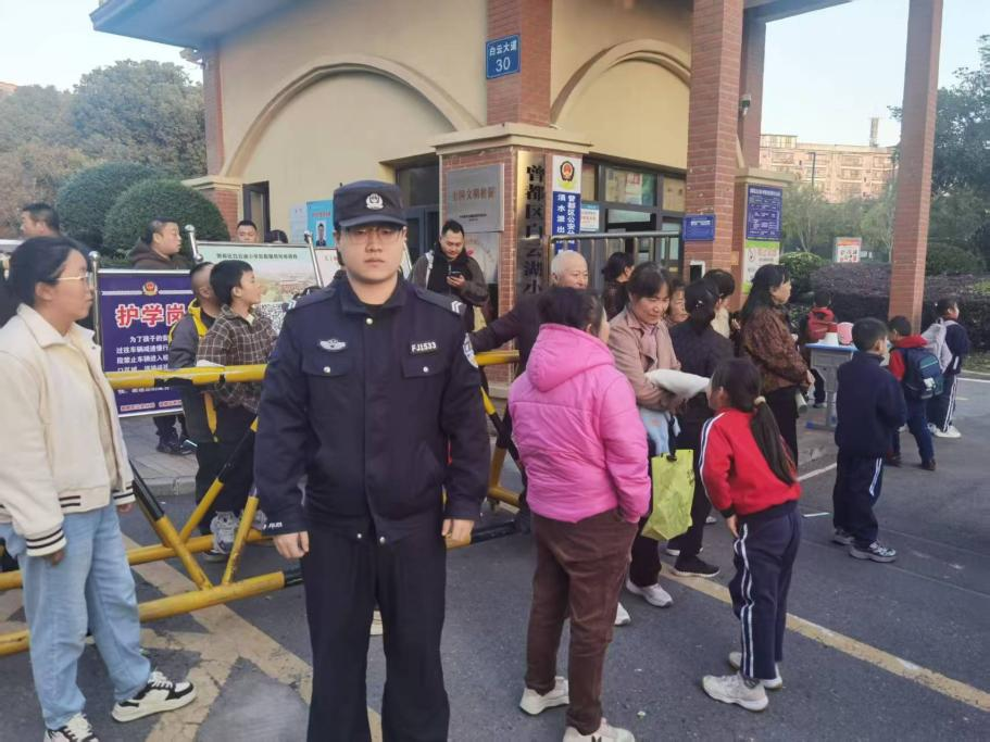“同學(xué)慢走,注意來往車輛!”“家長(zhǎng)您好,這是反詐宣傳手冊(cè),刷單就是詐騙,網(wǎng)購(gòu)?fù)丝钜藢?shí),陌生鏈接不點(diǎn)擊……”每日上下學(xué)時(shí)段,涢水派出所民輔警準(zhǔn)時(shí)駐守轄區(qū)中小學(xué)、幼兒園門口開展護(hù)學(xué)行動(dòng),化身孩子們的“安全衛(wèi)士”維護(hù)現(xiàn)場(chǎng)安全秩序。