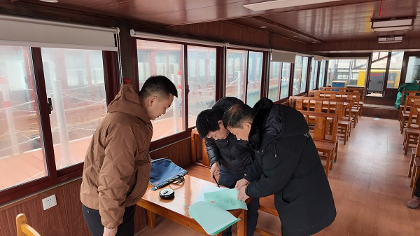 行動(dòng)現(xiàn)場,中心組織船檢骨干,采取“圖紙核查+現(xiàn)場核驗(yàn)”模式,對廣水轄區(qū)客渡船開展全方位安全“體檢”。重點(diǎn)核查實(shí)船布置、乘客定額與圖紙、證書的一致性,嚴(yán)查違規(guī)改建、私裝大功率設(shè)備等行為;細(xì)致查驗(yàn)船體結(jié)構(gòu)、主機(jī)等關(guān)鍵部位及設(shè)備技術(shù)狀況,確保船舶核心安全指標(biāo)符合法規(guī)要求。