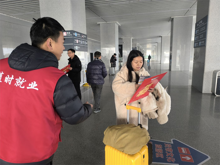 自2月7日起,市人社局緊扣優(yōu)化營(yíng)商環(huán)境、服務(wù)返鄉(xiāng)群體、助力家鄉(xiāng)發(fā)展的核心目標(biāo),在隨州南站、隨州火車站同步設(shè)立返鄉(xiāng)就業(yè)創(chuàng)業(yè)服務(wù)驛站,工作人員面對(duì)面為返鄉(xiāng)人員講解重點(diǎn)企業(yè)招聘信息、創(chuàng)業(yè)擔(dān)保貸款、技能培訓(xùn)補(bǔ)貼等一系列惠企惠民政策,同步推廣“隨時(shí)就業(yè)”智慧公共就業(yè)服務(wù)平臺(tái)。返鄉(xiāng)人員只需掃描二維碼,即可完成就業(yè)創(chuàng)業(yè)意向登記,享受精準(zhǔn)崗位匹配、政策主動(dòng)推送等一站式服務(wù)。截至目前,活動(dòng)已累計(jì)發(fā)放就業(yè)創(chuàng)業(yè)政策手冊(cè)3000余份,為600余名返鄉(xiāng)人員提供政策咨詢與講解服務(wù)。