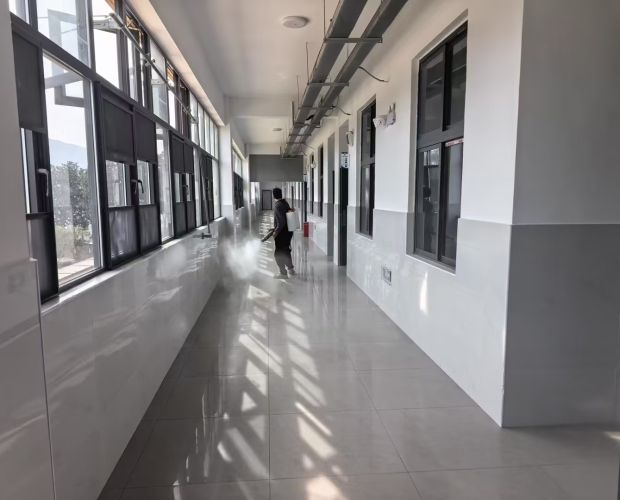消毒工作啟動(dòng)前,學(xué)校周密部署、明確分工,對(duì)參與消殺的工作人員進(jìn)行規(guī)范操作培訓(xùn),嚴(yán)格按照衛(wèi)生防疫標(biāo)準(zhǔn)科學(xué)配比消毒液,確保消殺效果與環(huán)境安全。作業(yè)過(guò)程中,工作人員規(guī)范操作,對(duì)教室地面、課桌椅、門(mén)窗、走廊樓梯;寢室床鋪、儲(chǔ)物柜、洗漱區(qū);食堂就餐區(qū)、操作間、儲(chǔ)物間;廁所潔具、下水道口、垃圾收集點(diǎn)等區(qū)域逐一細(xì)致噴灑,重點(diǎn)強(qiáng)化高頻接觸部位消毒,徹底清理衛(wèi)生死角,做到橫向到邊、縱向到底、不留盲區(qū)。