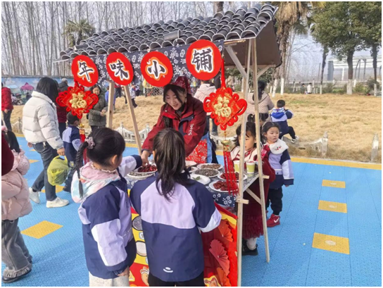新學(xué)期的第一份歡喜,藏在熱鬧的年味小鋪里。砂糖橘、花生、瓜子、各式糖果整齊擺放,孩子們自主挑選、快樂(lè)分享,在歡聲笑語(yǔ)中延續(xù)春節(jié)的喜慶與溫暖。小小的攤位,是社交的小天地,是分享的啟蒙課,讓開(kāi)學(xué)的儀式感滿滿當(dāng)當(dāng)。